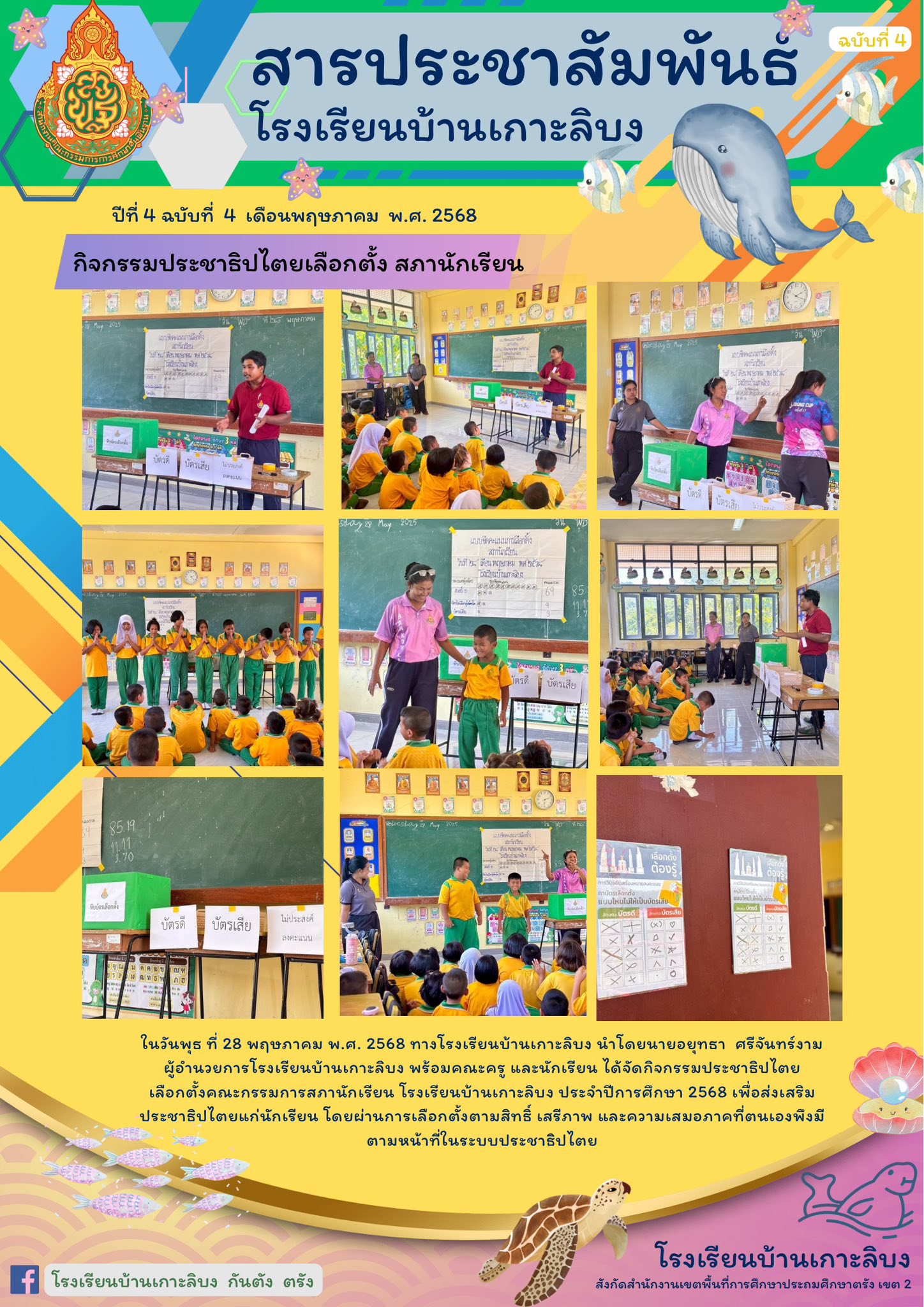 กิจกรรมประชาธิปไตย เลือกตั้งคณะกรรมการสภานักเรียน โรงเรียนบ้านเกาะลิบง ประจำปีการศึกษา 2568