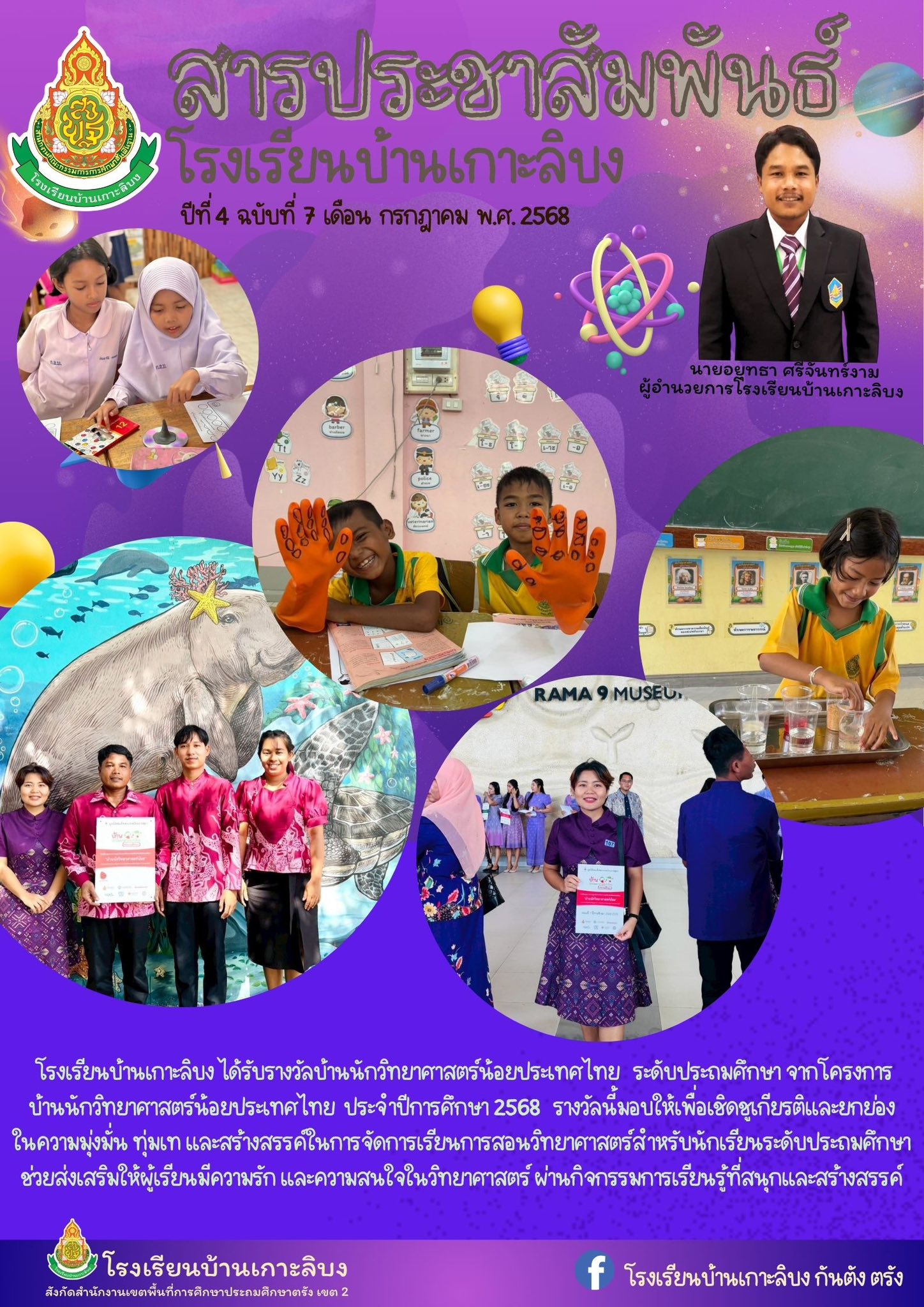 โรงเรียนบ้านเกาะลิบง ได้รับรางวัลบ้านนักวิทยาศาสตร์น้อยประเทศไทย ระดับประถมศึกษา จากโครงการบ้านนักวิทยาศาสตร์น้อยประเทศไทย ประจำปีการศึกษา 2568